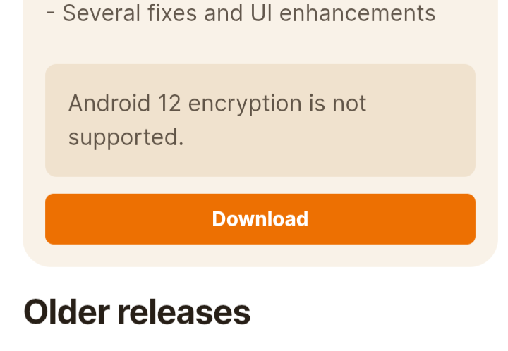 然后直接往下翻找到你手机的设备代号或者在搜索框内查询,点击后找到最新发布(Last release)下面的下载(Download)的上方有没有如下图类似的“ Android XX encryption is not supported. ”提示